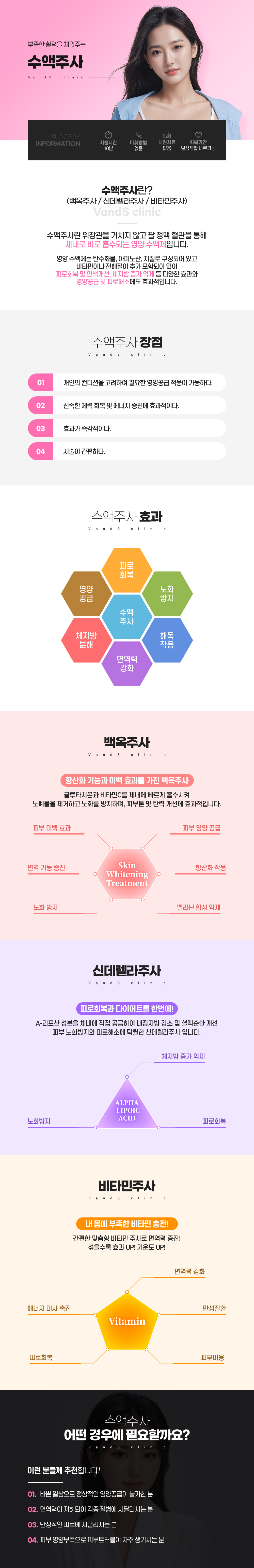 수액(링거) 형식의 시술로 팔뚝에 멍, 붓기, 미약한 통증 등은 간혹 발생할 수 있으나 곧 회복됩니다.